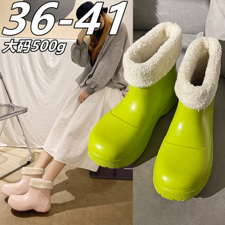 网红防水鞋加绒雨靴女2021秋冬新款厚底时尚短靴