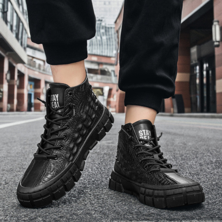 秋季鳄鱼纹中帮男鞋摩托车骑行鞋男子机车靴军靴 户外徒步靴