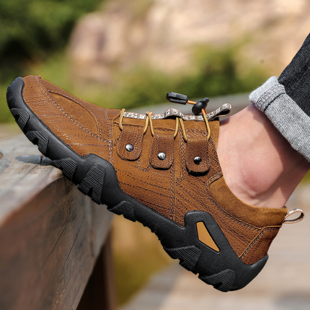 新驰步3770头层猪皮2022春季新款户外登山鞋男