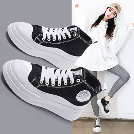 【誉诚女鞋-C20】ins网红同款高帮帆布鞋厚底女鞋-39元