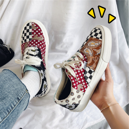【港仔站】VT666-1一口价腰果花帆布鞋低帮港风潮鞋涂鸦
