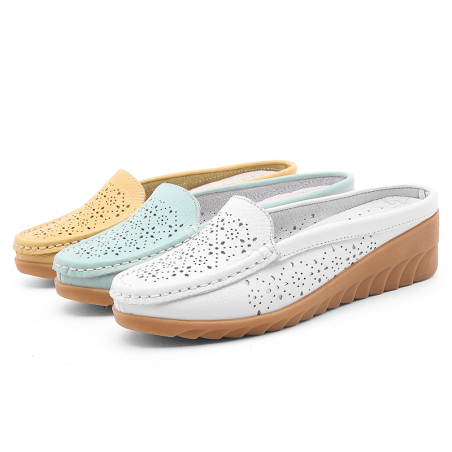 休闲百搭低跟真皮镂空女鞋