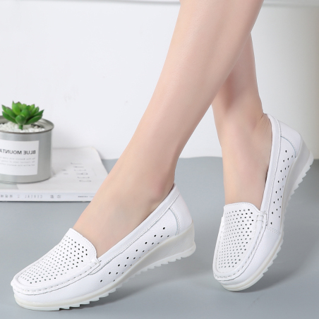春夏休闲镂空+加绒真皮护士鞋小白鞋平底女鞋