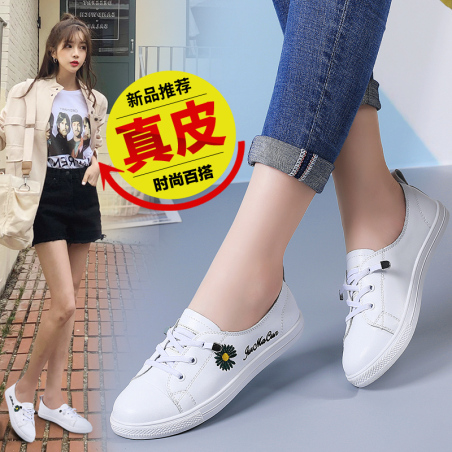 足娇1955,新款休闲真皮绣花小白鞋学生女潮鞋