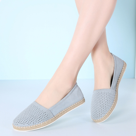 足娇7023,休闲百搭反绒真皮镂空平底女鞋