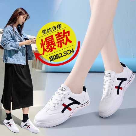 足娇253,休闲真皮内增高百搭小白鞋女潮鞋
