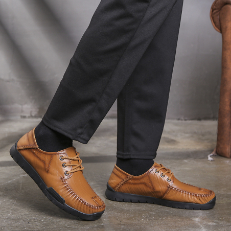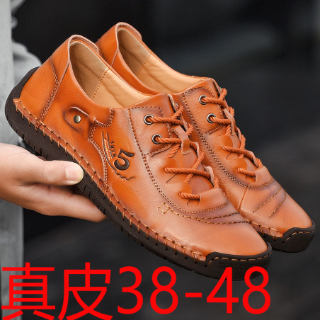 跨境休闲鞋男真皮休闲皮鞋夏季大码男鞋手工牛皮一脚蹬带视频