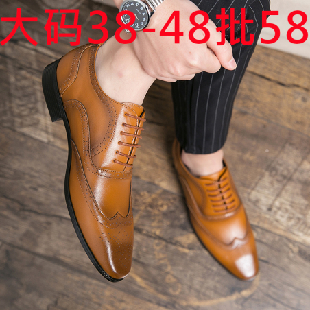 跨境大码复古韩版休闲小皮鞋男潮流商务正装英伦青少年布洛克男鞋