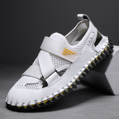 小鬼工厂店 20307头层牛皮网布凉鞋男手工缝线潮流大码男鞋