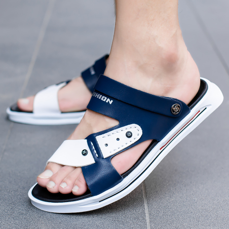 鸿运鞋业 新款 凉鞋男两用潮流开车休闲外穿男士拖鞋