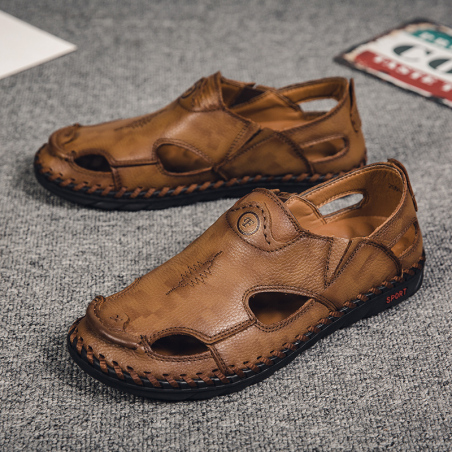 恒 达 主推凉鞋男夏季新款爸爸鞋牛皮休闲沙滩鞋真皮39-44