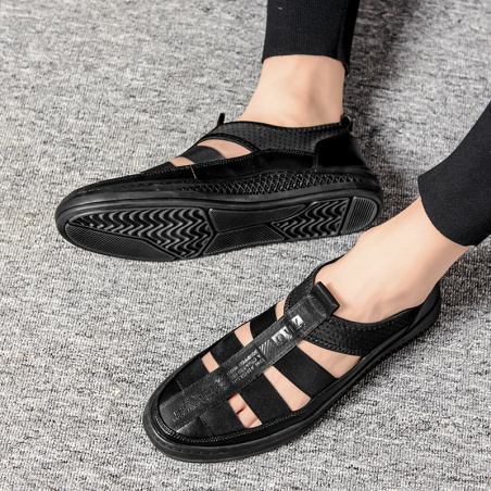 小鬼工厂店 20307头层牛皮网布凉鞋男手工缝线潮流大码男鞋
