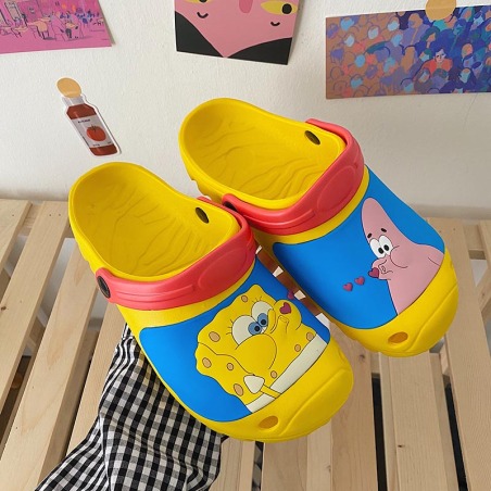 海绵宝宝洞洞鞋派大星拖鞋2021夏新款原创卡通可爱包头凉鞋