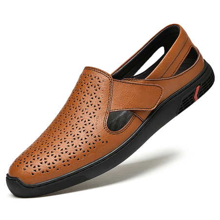 夏季大码镂空洞洞皮凉鞋真皮软底开车外穿防滑沙滩鞋外贸