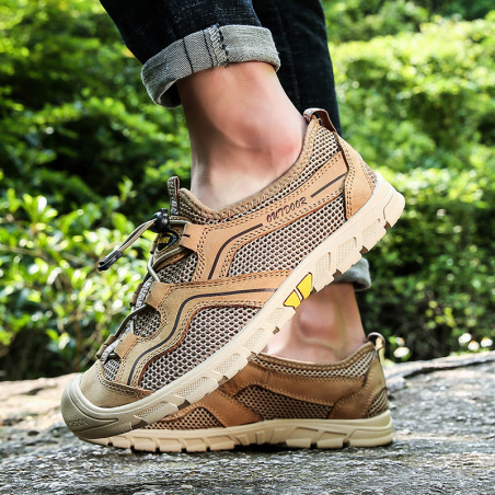 宝达99217新款头层牛皮户外溯溪鞋透气网布鞋