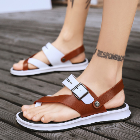 877真超纤皮 PU大底男沙滩凉鞋 凉拖二用 爆款