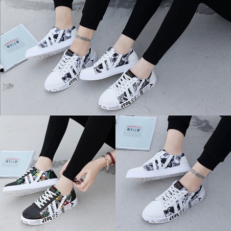 高帮情侣帆布鞋涂鸦潮鞋35-44