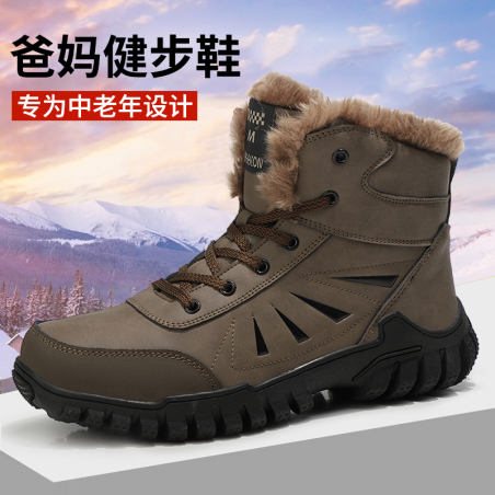 江东冬季高品质老人鞋户外登山鞋中老年人加绒健步鞋棉鞋跨境款