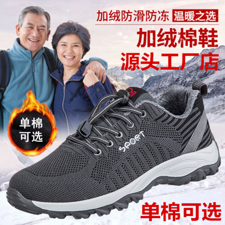 六月 安全老人鞋电视广告款防滑健步鞋加绒加厚棉鞋