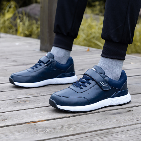 江东鞋业爆款秋冬皮面加绒防水保暖老人鞋皮面加绒老人健步鞋