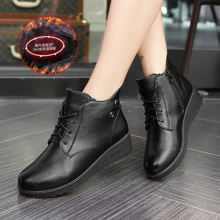 PU轻底妈妈鞋时尚复古系带风内衬棉舒适保暖