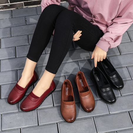 妈妈春秋鞋聚胺脂底PU面轻柔浅口橡筋弹性舒适穿行