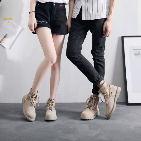战狼2同款马丁靴男中帮英伦风百搭沙漠靴女透气内增高工装靴子