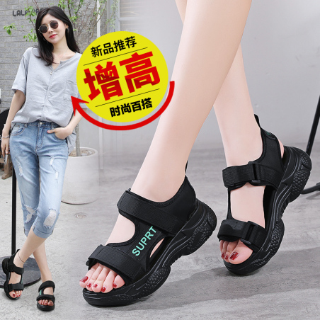宣扬女鞋 MN705韩版夏季厚底沙滩凉鞋女运动增高松糕女凉鞋
