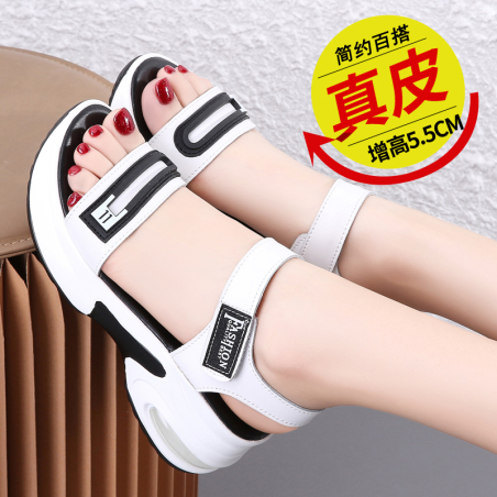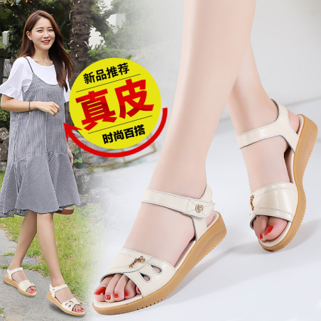 夏季新款休闲坡跟真皮女鞋女凉鞋