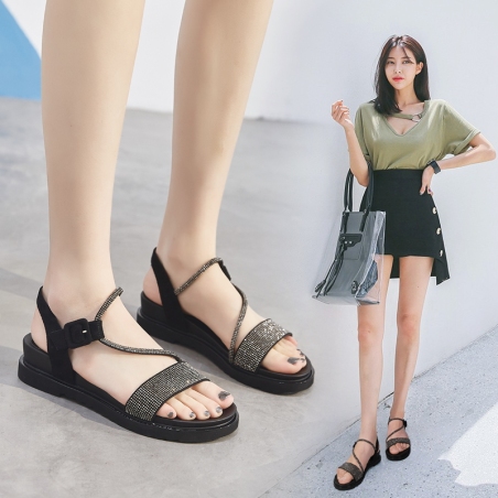 足娇2211,新款百搭时尚绣花水钻休闲软底女凉鞋