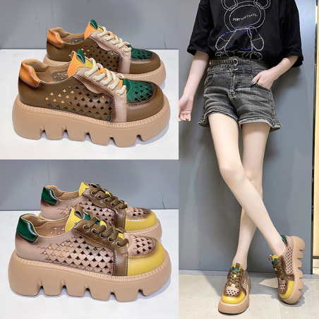 夏季增高单鞋镂空复古洞洞凉鞋新款厚底松糕女鞋 小皮鞋 大头鞋