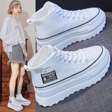 可米●D06 高帮松糕小白鞋,标准码