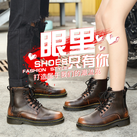 小鬼工厂店 7262大码秋冬情侣款马丁靴36-46码棉+5