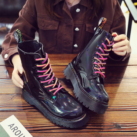 固特异粗线Jadon镭射马丁靴女真皮高帮侧拉链短靴子