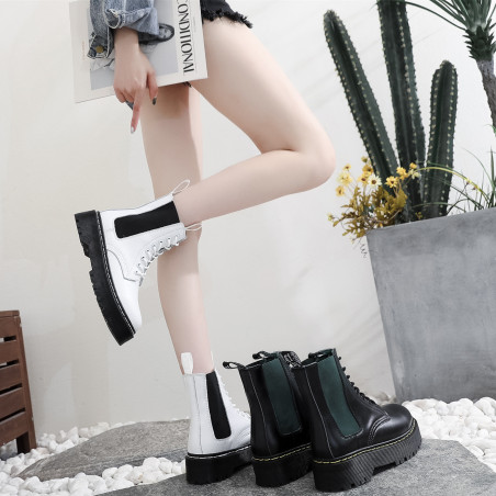 固特异粗线Jadon厚底10孔马丁靴女 高帮真皮侧拉链