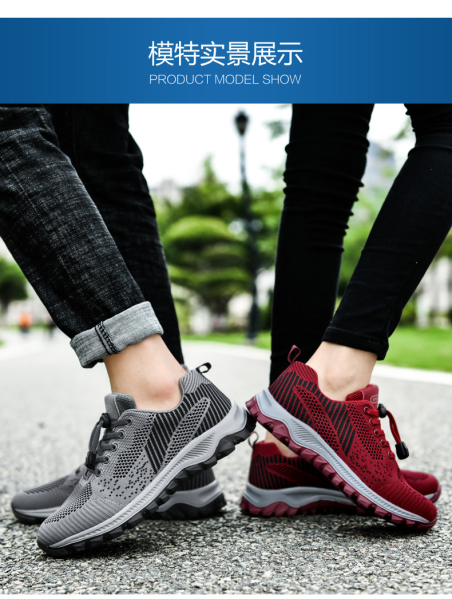 秋季新款中老年健步鞋透气飞织鞋爸妈鞋男女鞋休闲鞋 QQ发视频