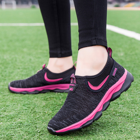 M73夏季款透气飞织中老年健步鞋男女鞋运动休闲鞋一脚蹬妈妈鞋