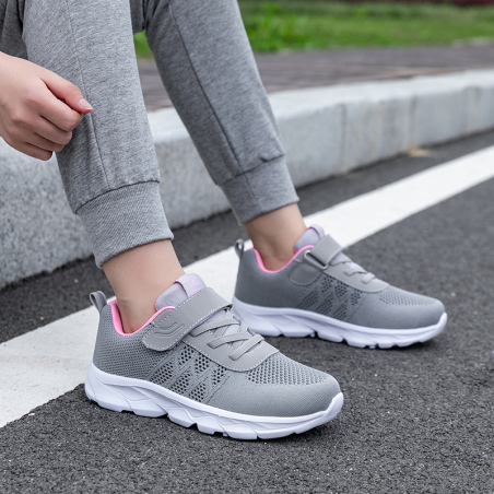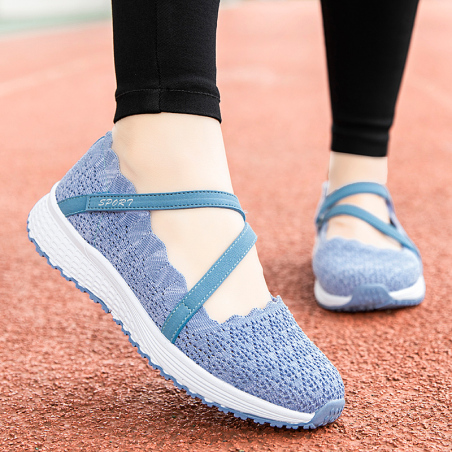 女鞋健步鞋聚胺脂底飞织袜象鼻扣系带穿脱不束缚休闲透气