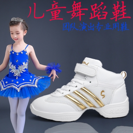 女童鞋增高鞋跳舞鞋女鞋软底网面 飞织中跟广场舞蹈鞋超轻运动
