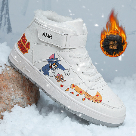 六月 童鞋秋冬加绒保暖高帮板鞋中小学生动漫运动鞋