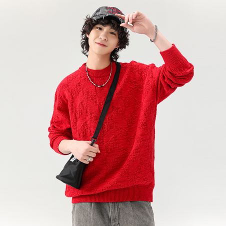 圆领毛衣男2024秋冬慵懒风套头线衣潮牌宽松打底针织衫上衣671,控价198.00