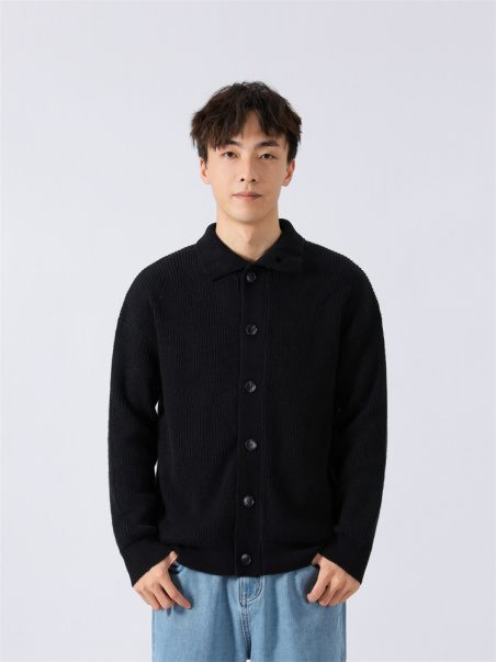 休闲复古纯色立领针织开衫外套男绅士英伦单排扣高级感毛衣外套潮