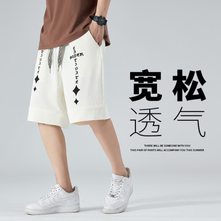 青少年短裤男夏季潮流宽松休闲印花五分裤初中学生运动裤