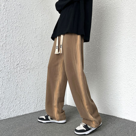 2023现货新款渐变织带韩版宽松直筒拖地休闲裤