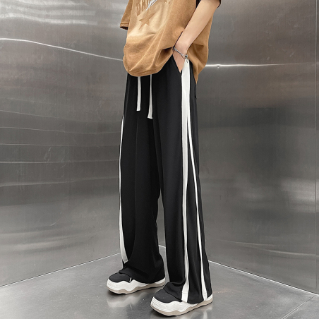 夏季冰丝裤侧边拼条男休闲冰丝垂感长裤