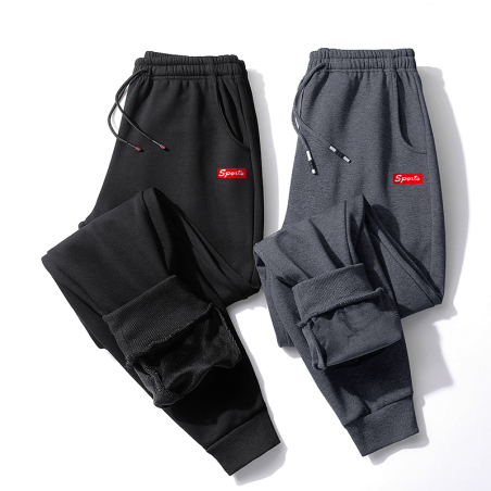 M-8XL柔软绒卫裤秋冬季休闲运动裤男加绒加厚束脚大码
