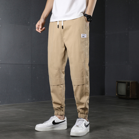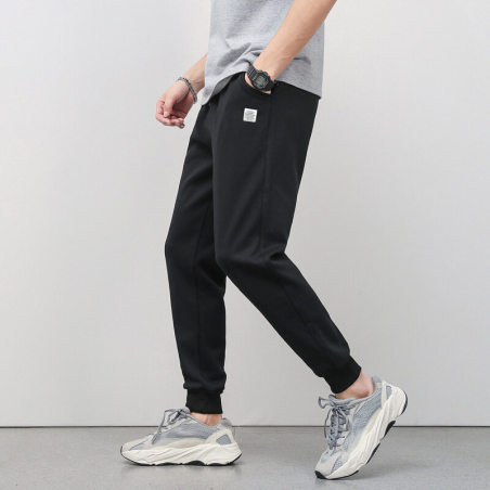 现货中腰宽松青年休闲裤子男士纯棉运动裤春秋季长裤纯色小脚卫裤