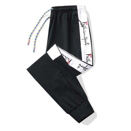 2022夏季薄款冰丝小脚休闲系带裤男士字母刺绣哈伦潮流修身九