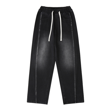 美式抽身松紧腰牛仔裤时尚休闲牛仔裤秋冬男女同款宽松直筒男休闲长裤