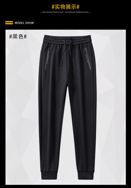 高品秋冬时尚裤子休闲裤四面弹加绒真超纤绒宽大码束脚针织长裤